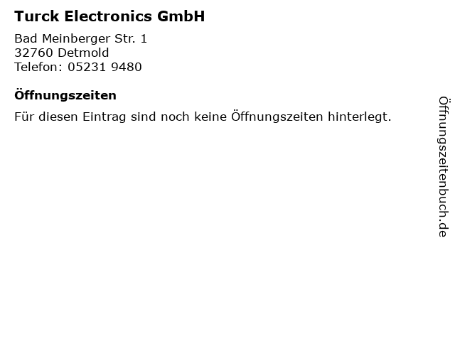 | Öffnungszeiten Turck Electronics GmbH in Detmold anzeigen | |