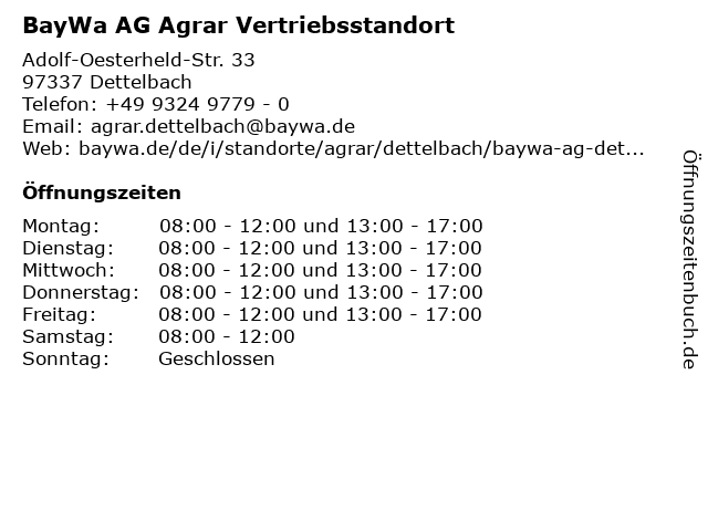 Öffnungszeiten BayWa AG Agrar Vertriebsstandort in Dettelbach anzeigen