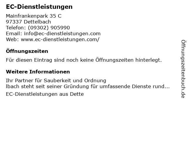| Öffnungszeiten EC-Dienstleistungen in Dettelbach anzeigen | |