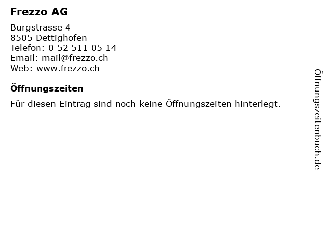 | Öffnungszeiten Frezzo AG in Dettighofen anzeigen | |