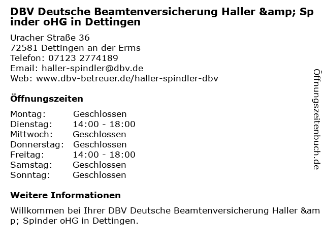 Branchen & Suchbegriffe zu DBV Deutsche Beamtenversicherung Haller & Spinder oHG in Dettingen:autoversicherung, beamtenversicherung, berufshaftpflichtversicherung, dbv, dettingen, deutsche, gebäude- und hausratsversicherung, haller, lebensversicherung, spinder, unternehmen für versicherungsfachfragen, zahnmedizinische versicherung |