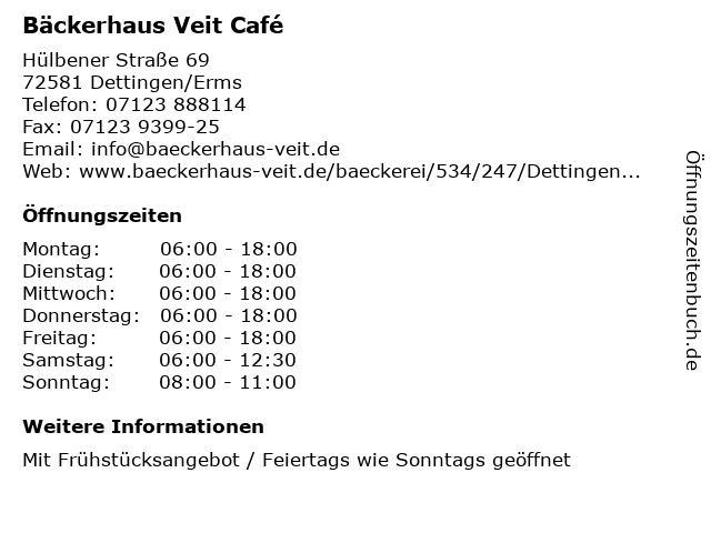 | Öffnungszeiten Bäckerhaus Veit Café in Dettingen/Erms anzeigen | |