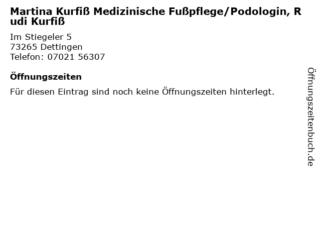 | Martina Kurfiß Medizinische Fußpflege/Podologin, Rudi Kurfiß anrufen | |