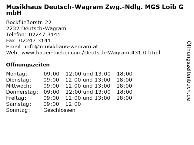 Branchen & Suchbegriffe zu Musikhaus Deutsch-Wagram Zwg.-Ndlg. MGS Loib GmbH:deutsch, loib, mgs, musikbücher, musikhaus, musikinstrumente, ndlg., wagram, zwg. |