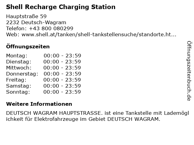 1 Shell Recharge Charging Station (Entfernung: 5,60 km) Gross-Enzersdorfer Straße , 2281 Raasdorf bei Wien 6 |