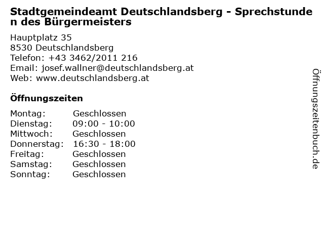 Branchen & Suchbegriffe zu Stadtgemeindeamt Deutschlandsberg - Sprechstunden des Bürgermeisters:amt, bürgermeisters, des, deutschlandsberg, rathaus, sprechstunden, stadtgemeindeamt, verwaltung |