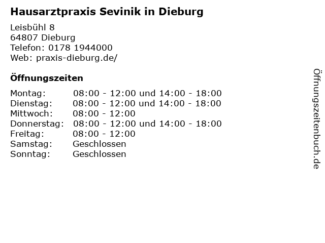 1 Praxis Sevinik - Hausarzt - Facharzt für Innere Medizin (Entfernung: 0,02 km) Leisbühl 8, 64807 Dieburg 2 Karl-Ludwig Zimmer u. Lars Wagner - Hausarztpraxis auf der Beune (Entfernung: 3,76 km) Auf der Beune 70, 64839 Münster 3 Hausarztpraxis Dr. Gabriel Turi, Facharzt für Allgemeinmedizin (Entfernung: 11,01 km) Wilhelm-Leuschner-Straße 51 a, 64823 Groß-Umstadt 4 Hausarztpraxis Kranichstein (Sprechstunden ohne Termin) (Entfernung: 11,13 km) Pfannmüllerweg 27, 64289 Darmstadt-Kranichstein 6 |