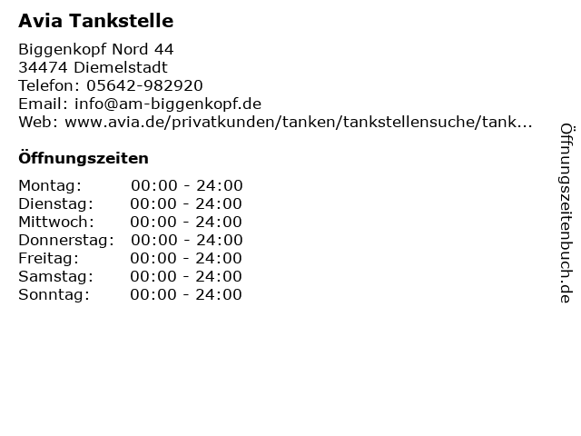 | Öffnungszeiten Avia Tankstelle in Diemelstadt anzeigen | |