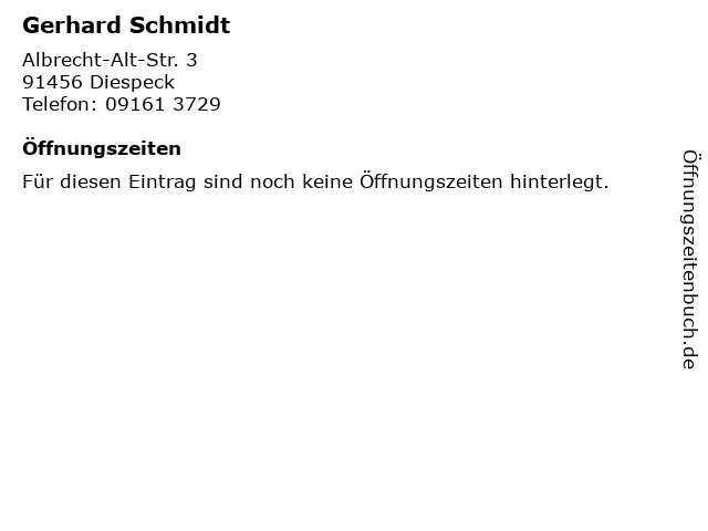 | Öffnungszeiten Gerhard Schmidt in Diespeck anzeigen | |