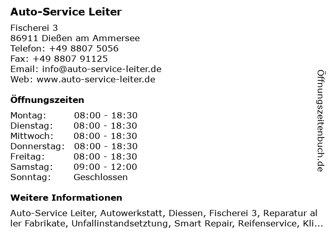 Branchen & Suchbegriffe zu Auto-Service Leiter:ammersee, auto, diessen, inspektion, klima, reifen, wartung, werkstatt |