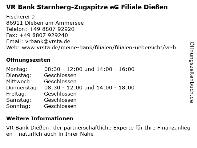 1 VR Bank Starnberg-Herrsching-Landsberg eG - (Geldautomat Dießen) (Entfernung: 0,00 km) Fischerei 9, 86911 Dießen 2 Geldautomat VR Bank Starnberg-Zugspitze eG (Entfernung: 0,01 km) Fischerei 9, 86911 Dießen am Ammersee 3 VR-Bank Landsberg-Ammersee eG - (Geldautomat Geschäftsstelle) (Entfernung: 0,22 km) Herrenstrasse 5, 86911 Diessen 4 VR-Bank Landsberg-Ammersee eG - Geschäftsstelle Diessen (Entfernung: 0,22 km) Herrenstrasse 5, 86911 Diessen 5 VR-Bank Landsberg-Ammersee eG - (SB-Filiale Diessen-Bahnhof) (Entfernung: 0,33 km) Bahnhofstraße 15, 86899 Dießen 6 VR Bank Starnberg-Herrsching-Landsberg eG - (Geldautomat Andechs) (Entfernung: 6,17 km) Herrschinger Str. 9, 82346 Andechs |
