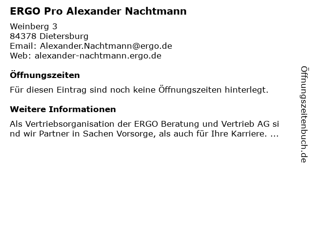 | Adresse ERGO Pro Alexander Nachtmann in Dietersburg anzeigen |