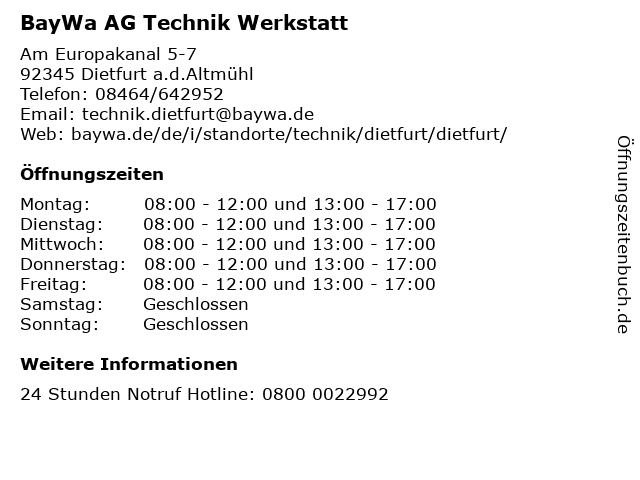 1 BayWa AG Agrar Vertriebsstandort (Entfernung: 0,00 km) Am Europakanal 5-7, 92345 Dietfurt a.d.Altmühl 6 |