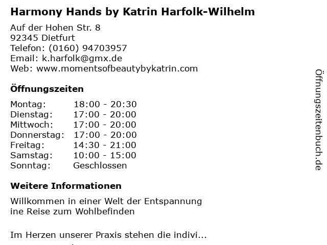 Branchen & Suchbegriffe zu Harmony Hands by Katrin Harfolk-Wilhelm:breuss-massage, by, entspannung, entspannungsmassagen, ganzkörpermassagen, hands, harfolk, harfolk-wilhelm, harmony, katrin, rückenmassagen, wilhelm, wohlfühlmassagen |