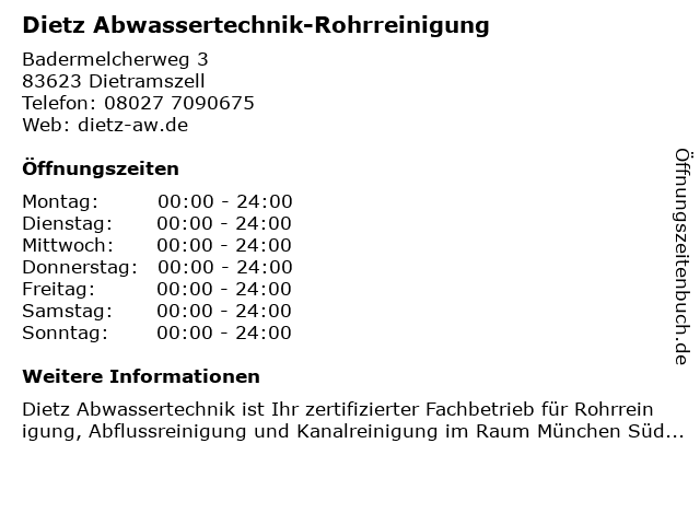 Branchen & Suchbegriffe zu Dietz Abwassertechnik-Rohrreinigung:abwassertechnik, dietz, klärgrubenreinigung, rohrreinigung |