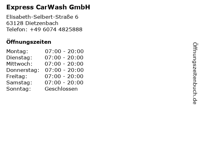 | Öffnungszeiten Express CarWash GmbH in Dietzenbach anzeigen | |