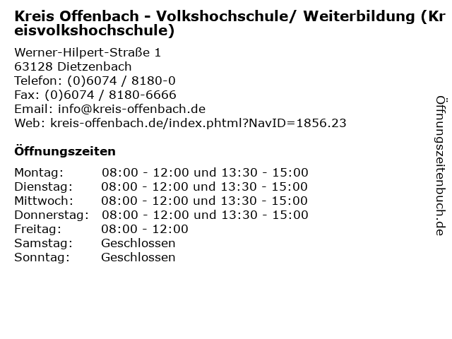 Branchen & Suchbegriffe zu Kreis Offenbach - Volkshochschule/ Weiterbildung (Kreisvolkshochschule):amt, behörde, beratung, büro, gemeinde, kreis, kreisvolkshochschule, markt, rathaus, stadt, verwaltung, volkshochschule/, weiterbildung |