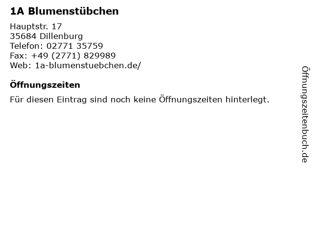 | Telefonnummer 1A Blumenstübchen in Dillenburg (02771 35759) anrufen | |