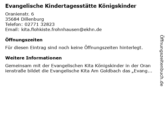 | Evangelische Kindertagesstätte Königskinder anrufen | |