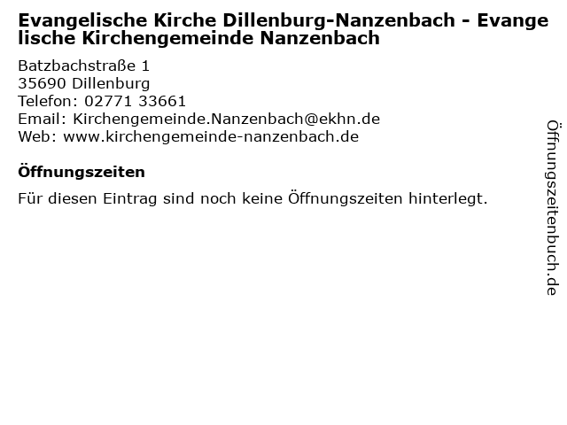 | Evangelische Kirche Dillenburg-Nanzenbach - Evangelische Kirchengemeinde Nanzenbach anrufen | |