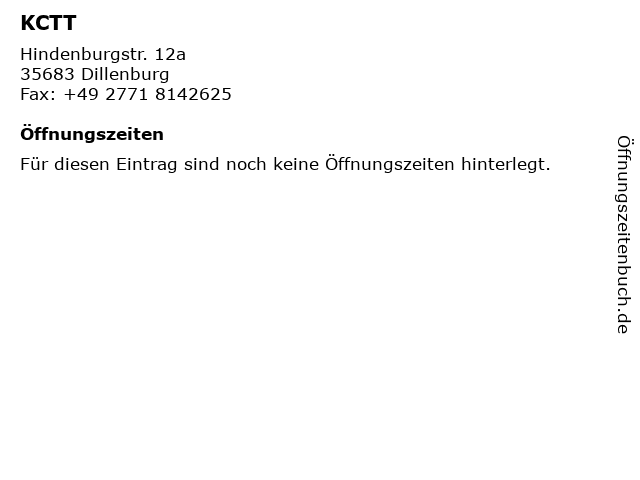 | Öffnungszeiten KCTT in Dillenburg anzeigen | |