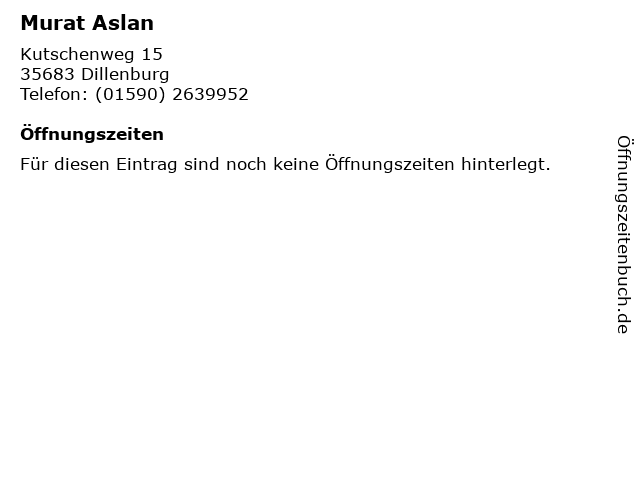 | Öffnungszeiten Murat Aslan in Dillenburg anzeigen | |