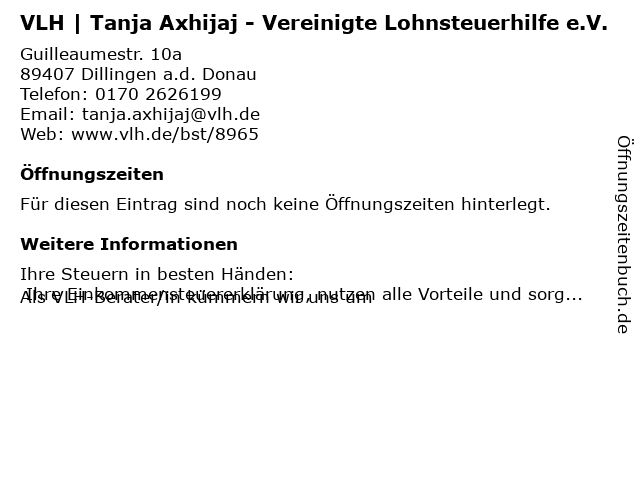 | VLH | Tanja Axhijaj - Vereinigte Lohnsteuerhilfe e.V. anrufen | |