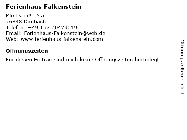 | Öffnungszeiten Ferienhaus Falkenstein in Dimbach anzeigen | |