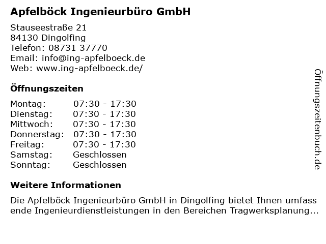 Branchen & Suchbegriffe zu Apfelböck Ingenieurbüro GmbH:apfelböck, ingenieurbüro |