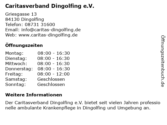 Branchen & Suchbegriffe zu Caritasverband Dingolfing e.V.:caritasverband, e.v. |