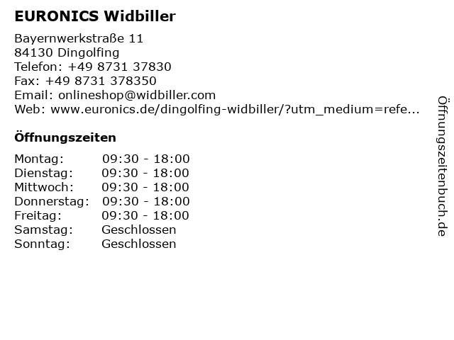 | Öffnungszeiten EURONICS Widbiller in Dingolfing anzeigen | |
