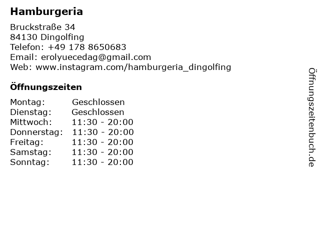 | Öffnungszeiten Hamburgeria in Dingolfing anzeigen | |
