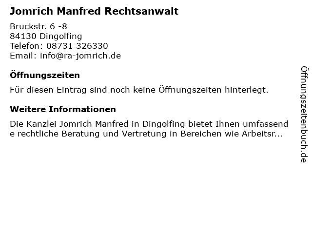 | Jomrich Manfred Rechtsanwalt anrufen | |