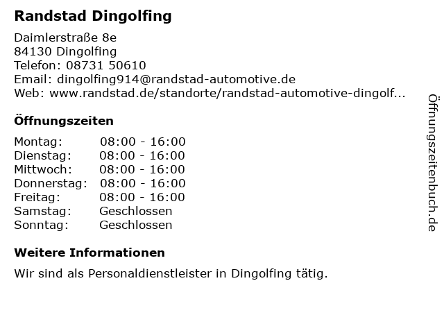| Öffnungszeiten Randstad Dingolfing in Dingolfing anzeigen | |