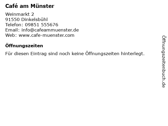 | Öffnungszeiten Café am Münster in Dinkelsbühl anzeigen | |