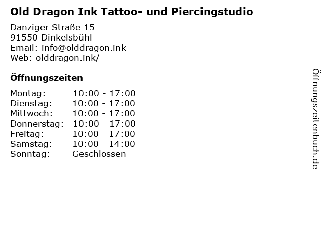 Old Dragon Ink Tattoo- und Piercingstudio in Dinkelsbühl: Telefonnummer, Öffnungszeiten und Adresse