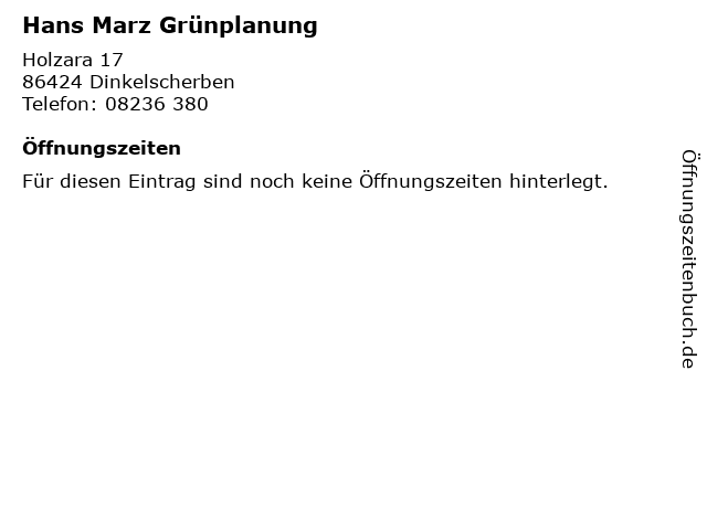 | Öffnungszeiten Hans Marz Grünplanung in Dinkelscherben anzeigen | |