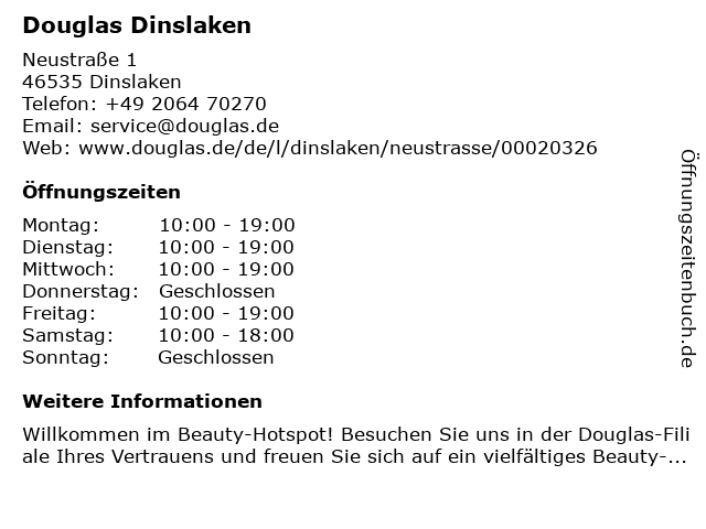 | Öffnungszeiten Douglas Dinslaken in Dinslaken anzeigen | |