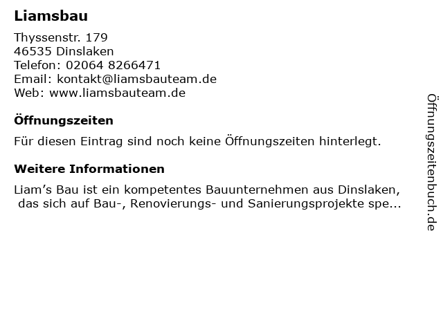 | Öffnungszeiten Liamsbau in Dinslaken anzeigen | |
