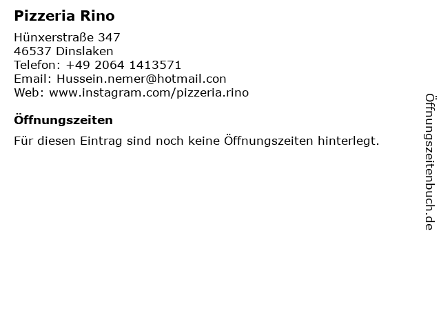 | Öffnungszeiten Pizzeria Rino in Dinslaken anzeigen | |