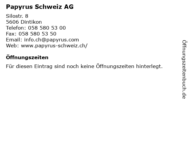 | Öffnungszeiten Papyrus Schweiz AG in Dintikon anzeigen | |