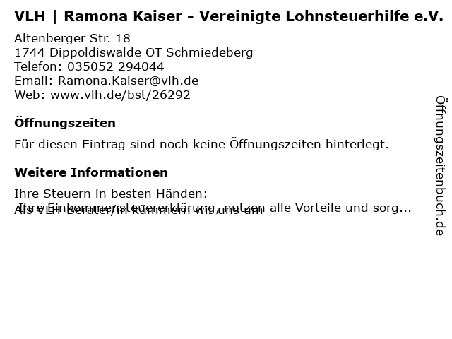 | VLH | Ramona Kaiser - Vereinigte Lohnsteuerhilfe e.V. anrufen | |