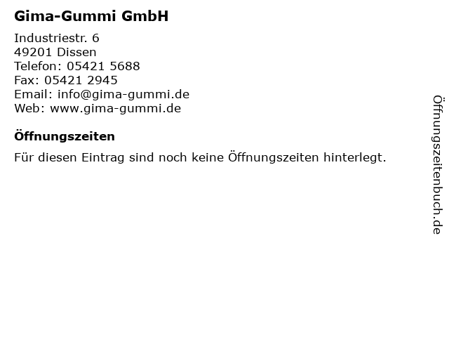 | Öffnungszeiten Gima-Gummi GmbH in Dissen anzeigen | |