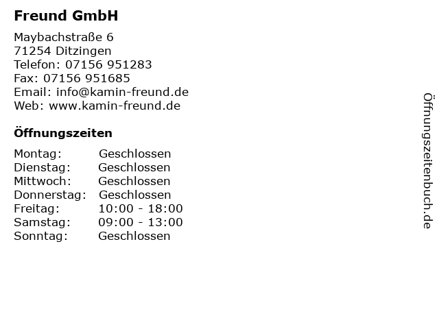| Öffnungszeiten Freund GmbH in Ditzingen anzeigen | |