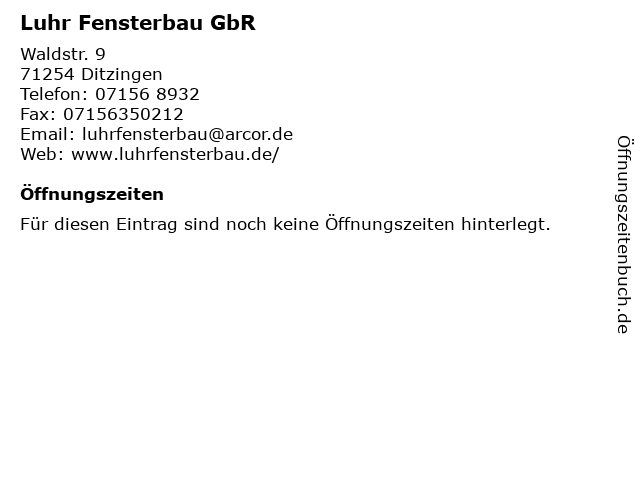 | Öffnungszeiten Luhr Fensterbau GbR in Ditzingen anzeigen | |