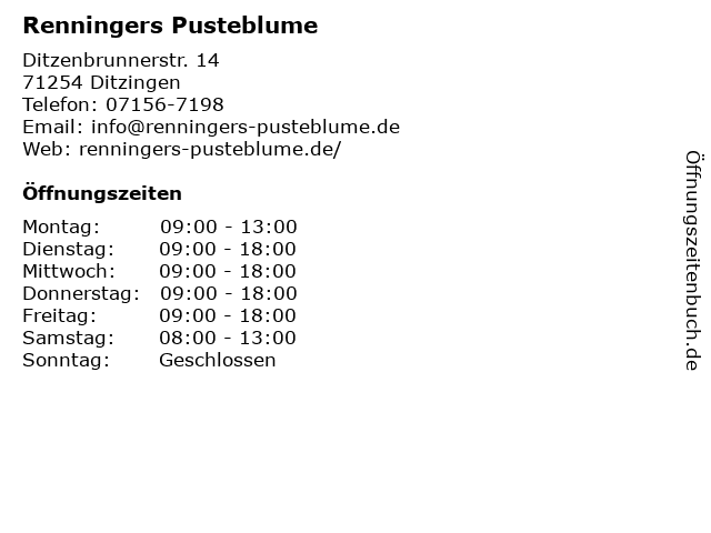 | Öffnungszeiten Renningers Pusteblume in Ditzingen anzeigen | |