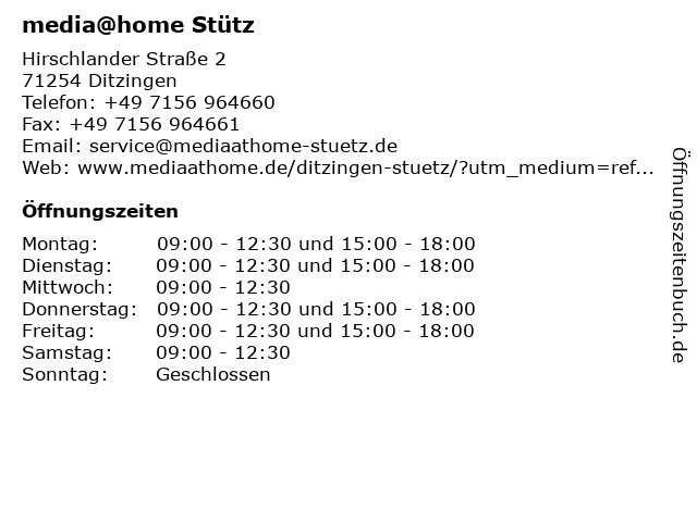 Öffnungszeiten media@home Stütz in Ditzingen anzeigen