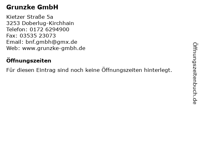 | Öffnungszeiten Grunzke GmbH in Doberlug-Kirchhain anzeigen | |