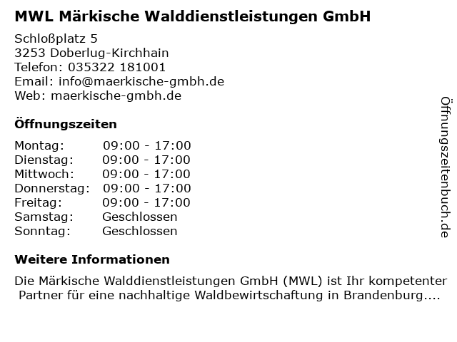 Branchen & Suchbegriffe zu MWL Märkische Walddienstleistungen GmbH:mwl, märkische, walddienstleistungen |