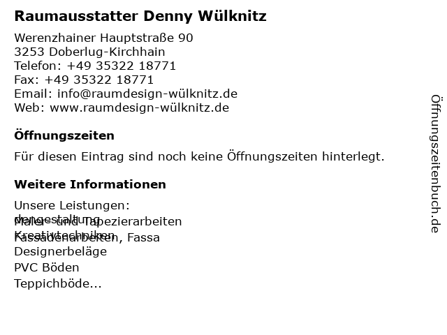| Raumausstatter Denny Wülknitz anrufen | |